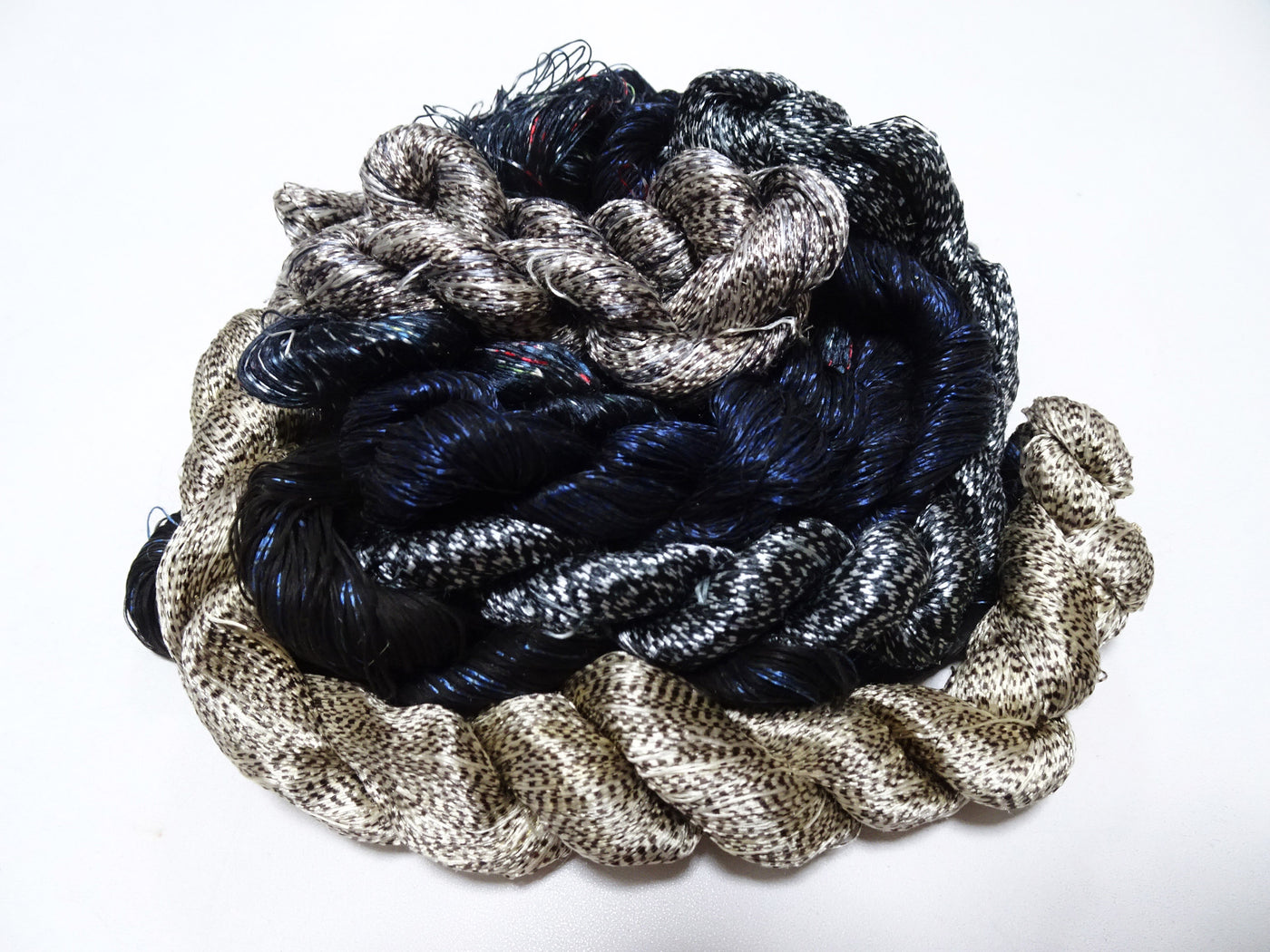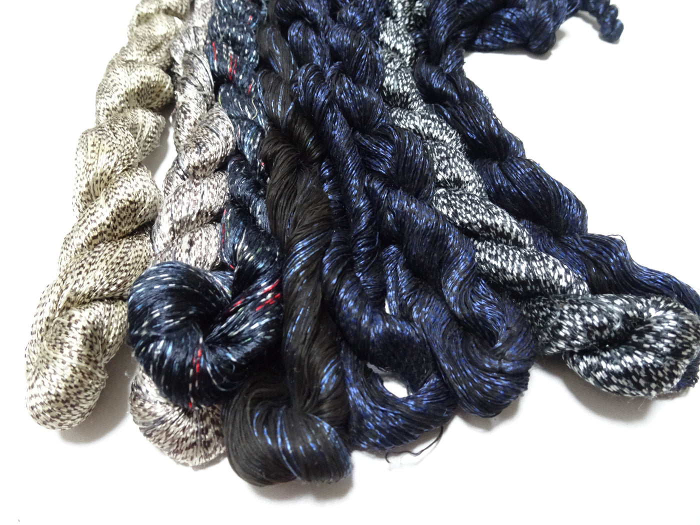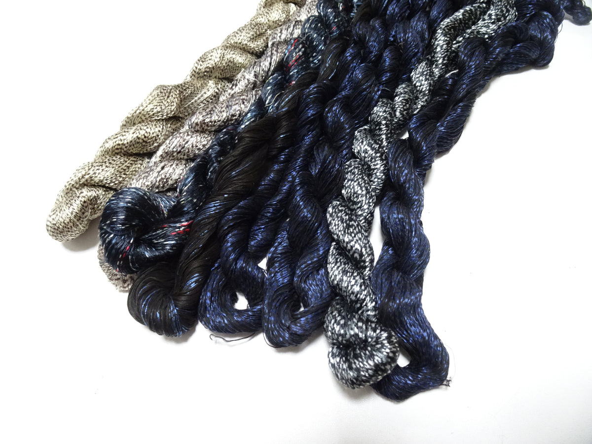 A combination of various types of threads from Oshima Tsumugi. Honba Dorozome (Authentic Mud Dyeing)Honba Dorozome, or “authentic mud dyeing,”...