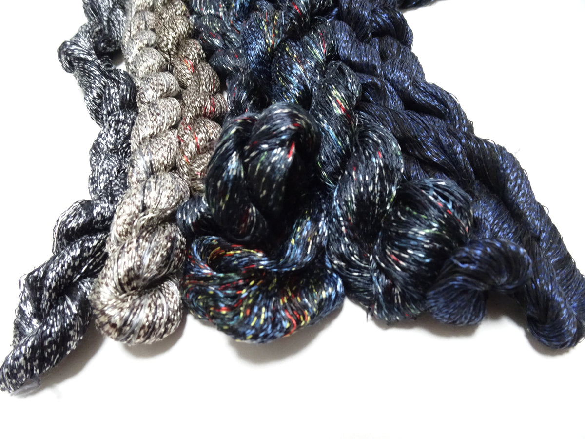 A combination of various types of threads from Oshima Tsumugi. Honba Dorozome (Authentic Mud Dyeing)Honba Dorozome, or “authentic mud dyeing,”...