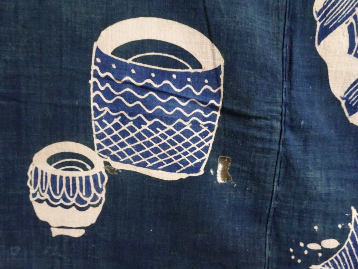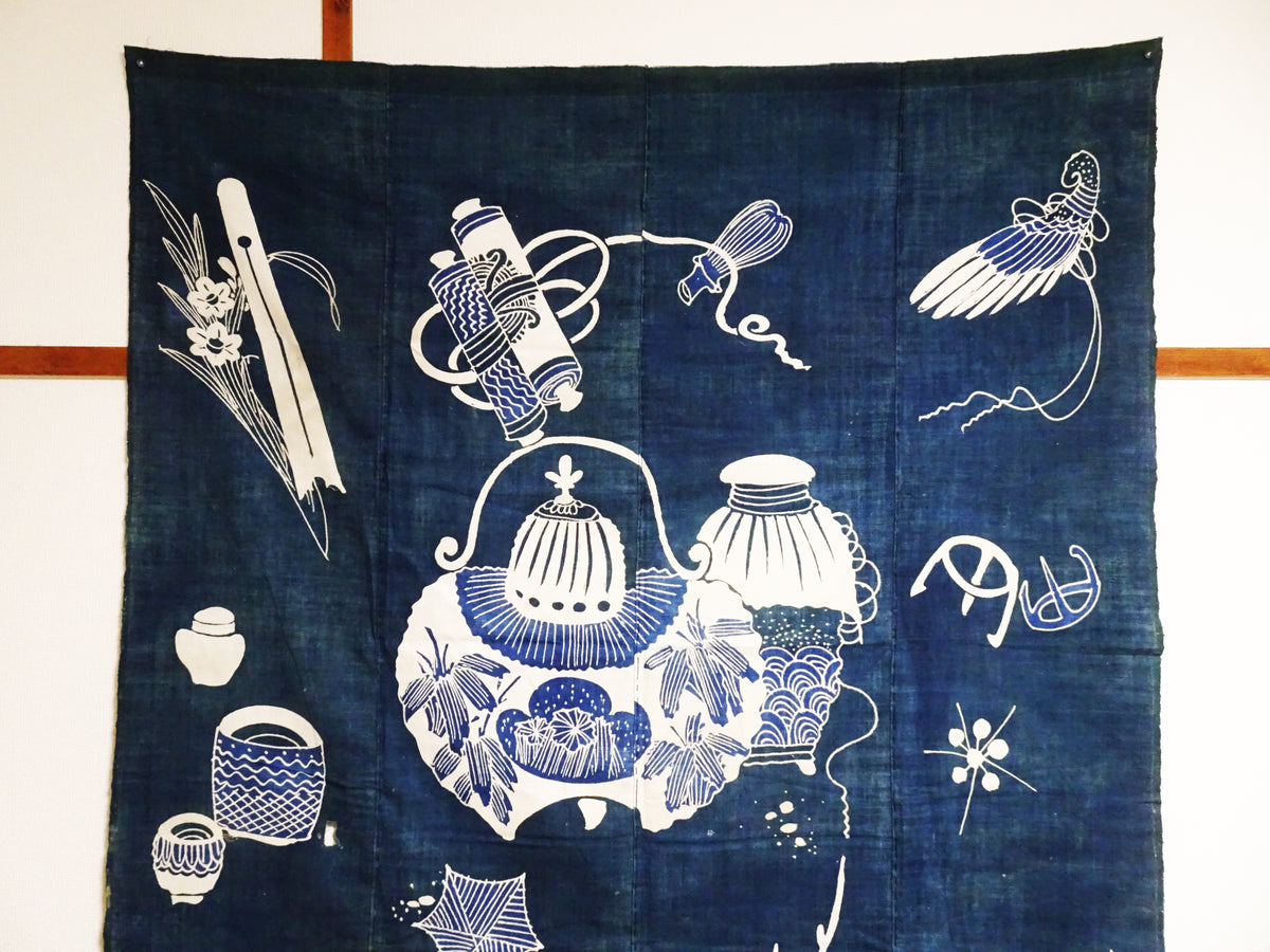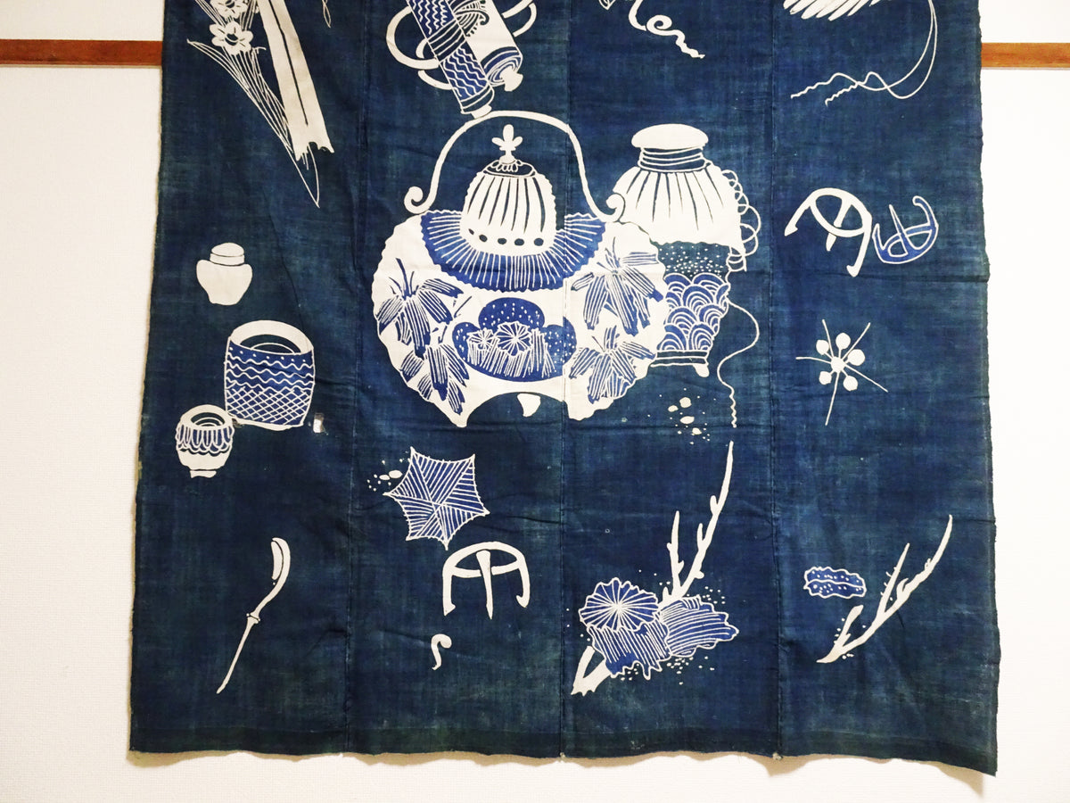Japanese Antique Cotton Tsutsugaki Indigo Green Japanese tea utensils 7778