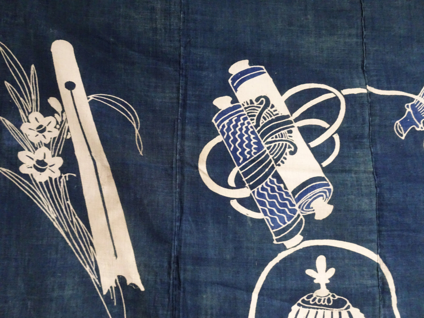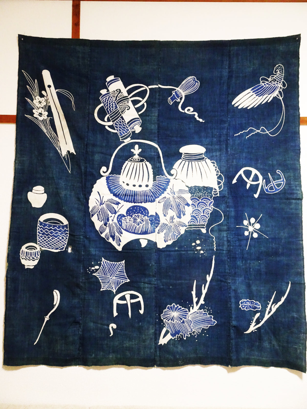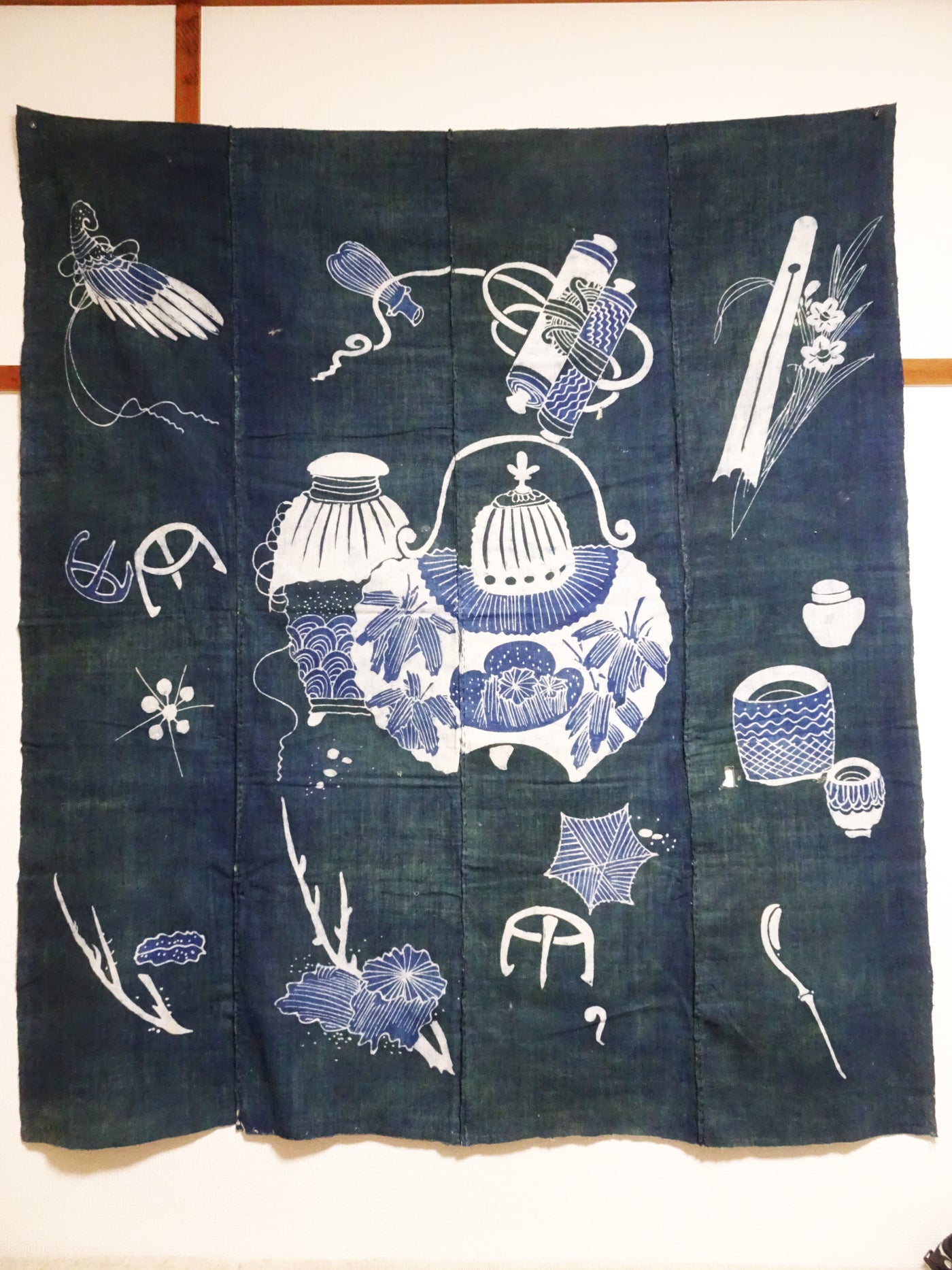 Japanese Antique Cotton Tsutsugaki Indigo Green Japanese tea utensils 7778