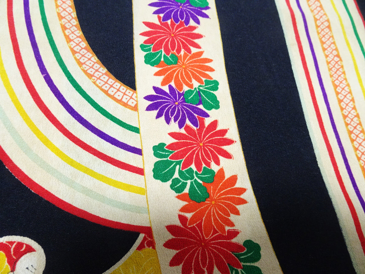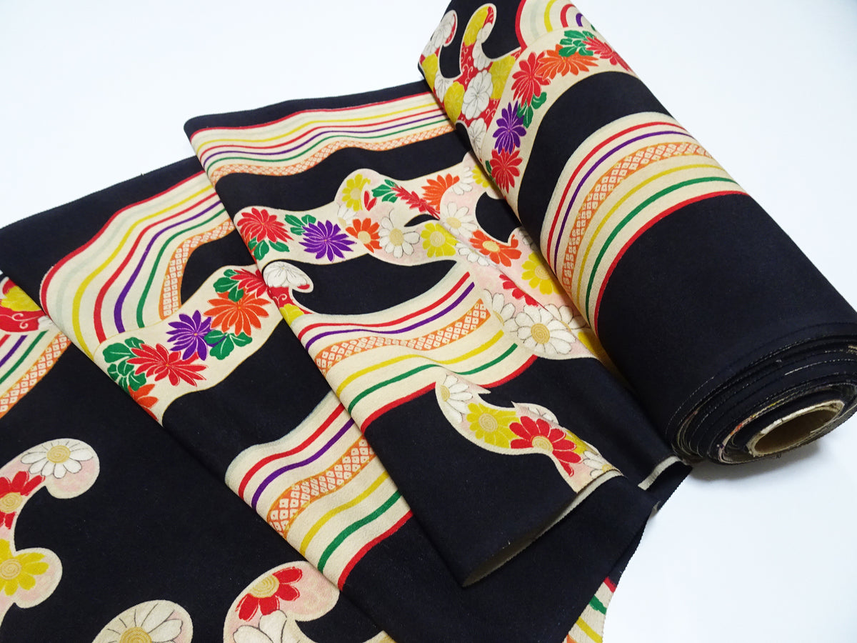 Japanese Kimono Vintage Silk Bolt Yuzen Dyed Wave Pattern 11958 Black 1200cm.