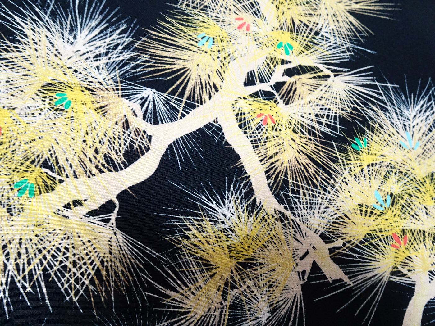 In Japanese culture, pine trees symbolize longevity, resilience, and prosperity, making this textile not only visually striking but also rich in meaning.