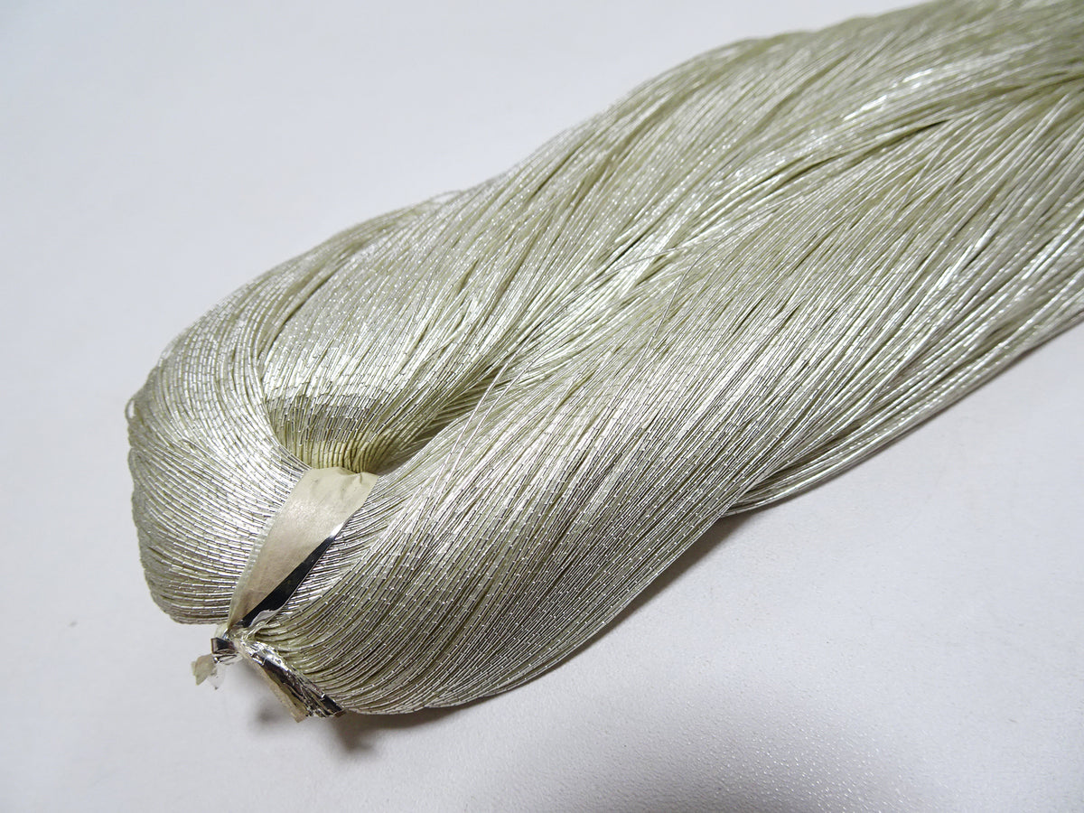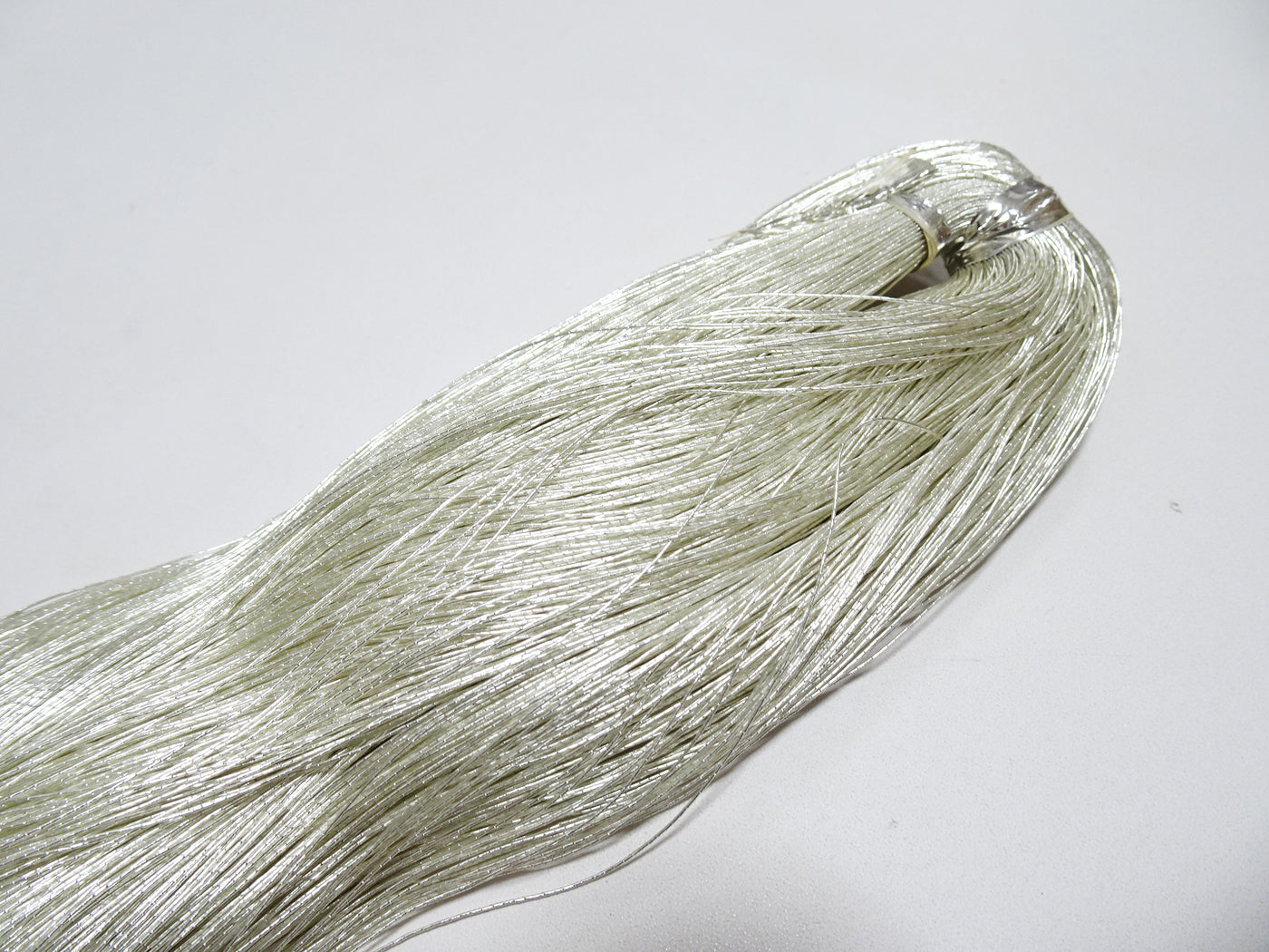 Then, the Japanese paper with the pure silver leaf attached is cut into small pieces. Then, wrap it around the core thread by hand. It takes a lot of time and effort. It is the finest thread made by the craftsmen of kyoto nishijin.